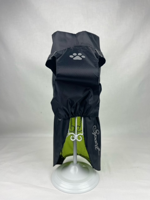 Kabanica za pse koja je kopča pomoću kaiša kojim se može podesiti obim oko prsa. Posjeduje dvije elastične trakice za zadnje noge.
